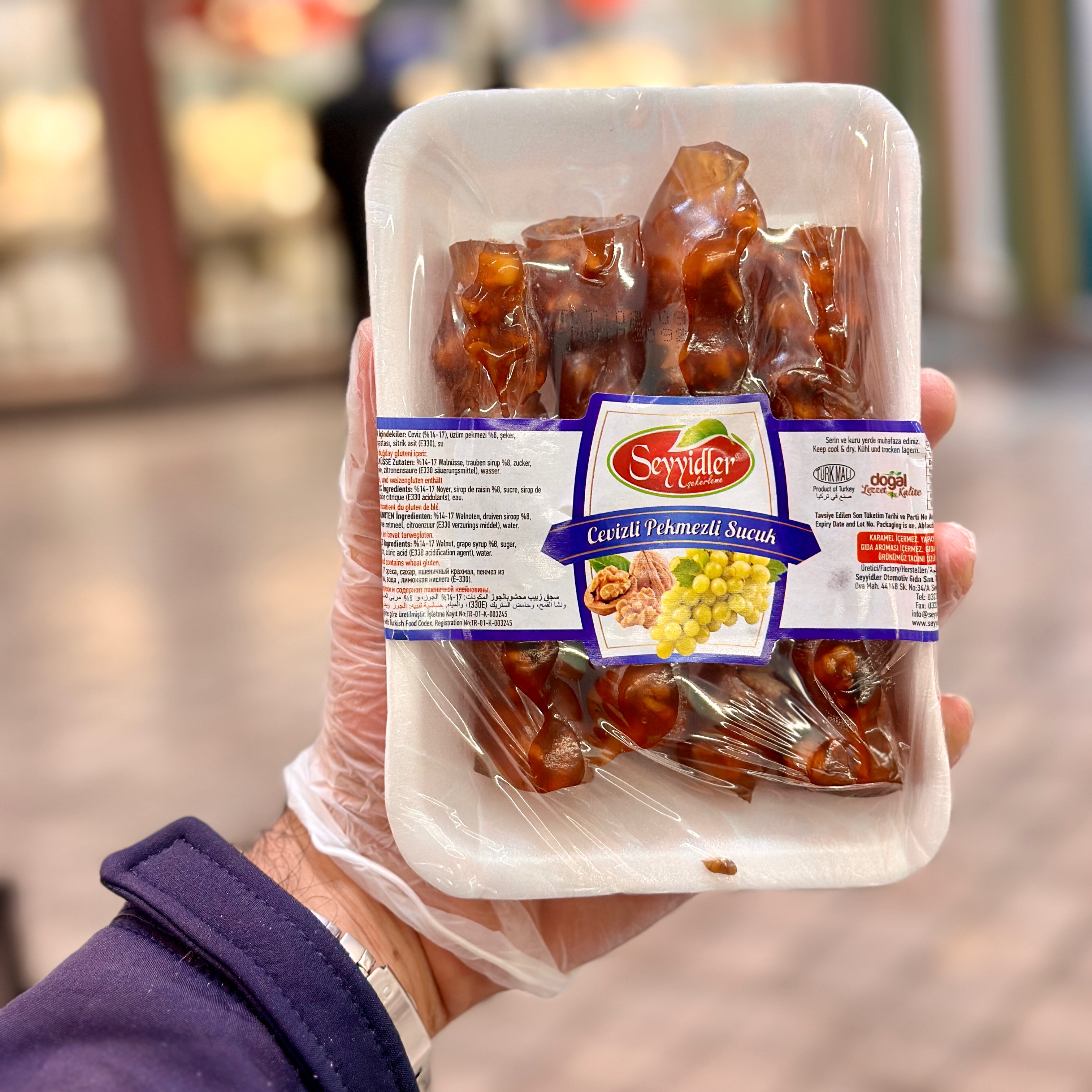 سوجوک شیره انگور و گردو سیدلر ترکیه یک شیرینی سنتی و خوشمزه است که از شیره انگور، گردو، نشاسته و ژلاتین تهیه میشود. این شیرینی شکل یک سوسیس را دارد و در داخل آن مغز گردو قرار دارد. سوجوک شیره انگور و گردو علاوه بر اینکه خوش طعم است، دارای خواص غذایی و سلامتی نیز میباشد. برخی از این خواص عبارتند از: