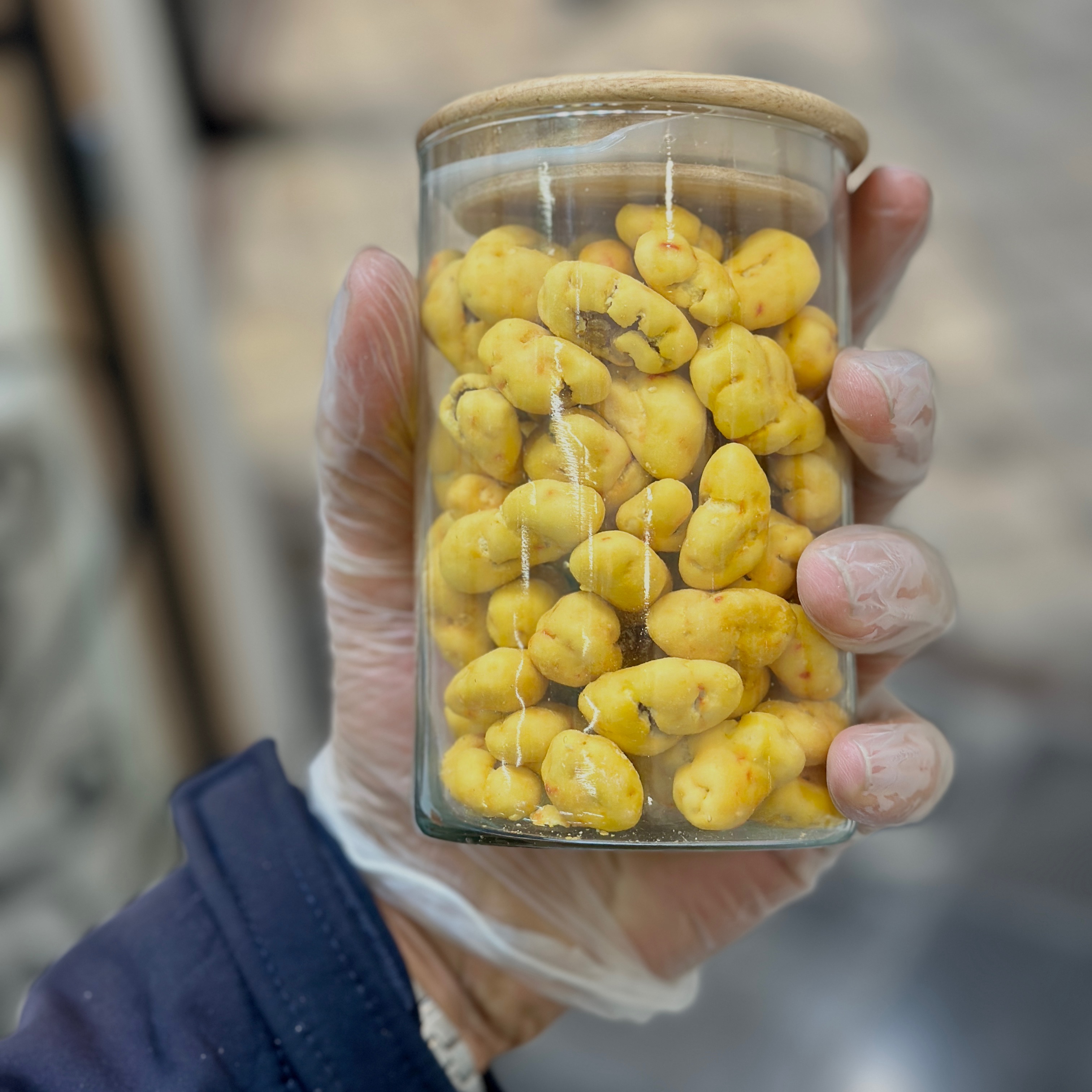 نقل گردویی زعفرانی یک شیرینی سنتی و خوشمزه است که از شکر، آب، گردو و زعفران تهیه میشود. این شیرینی شکل یک گردو را دارد و با پودر زعفران رنگ و طعم داده شده است. نقل گردویی زعفرانی علاوه بر اینکه خوش طعم است، دارای خواص غذایی و سلامتی نیز میباشد. برخی از این خواص عبارتند از: حاوی ویتامین E و C که برای سلامت پوست و مو مفید هستند حاوی اسیدهای چرب امگا 3 و 6 که برای سلامت قلب و مغز مفید هستند حاوی آنتیاکسیدانهایی که مقابله با رادیکالهای آزاد و پیری پوست را کم میکنند حاوی فیبر که به کنترل قند خون و کاهش وزن کمک میکند نقل گردویی زعفرانی را میتوانید به صورت تکی یا با چای و قهوه میل کنید