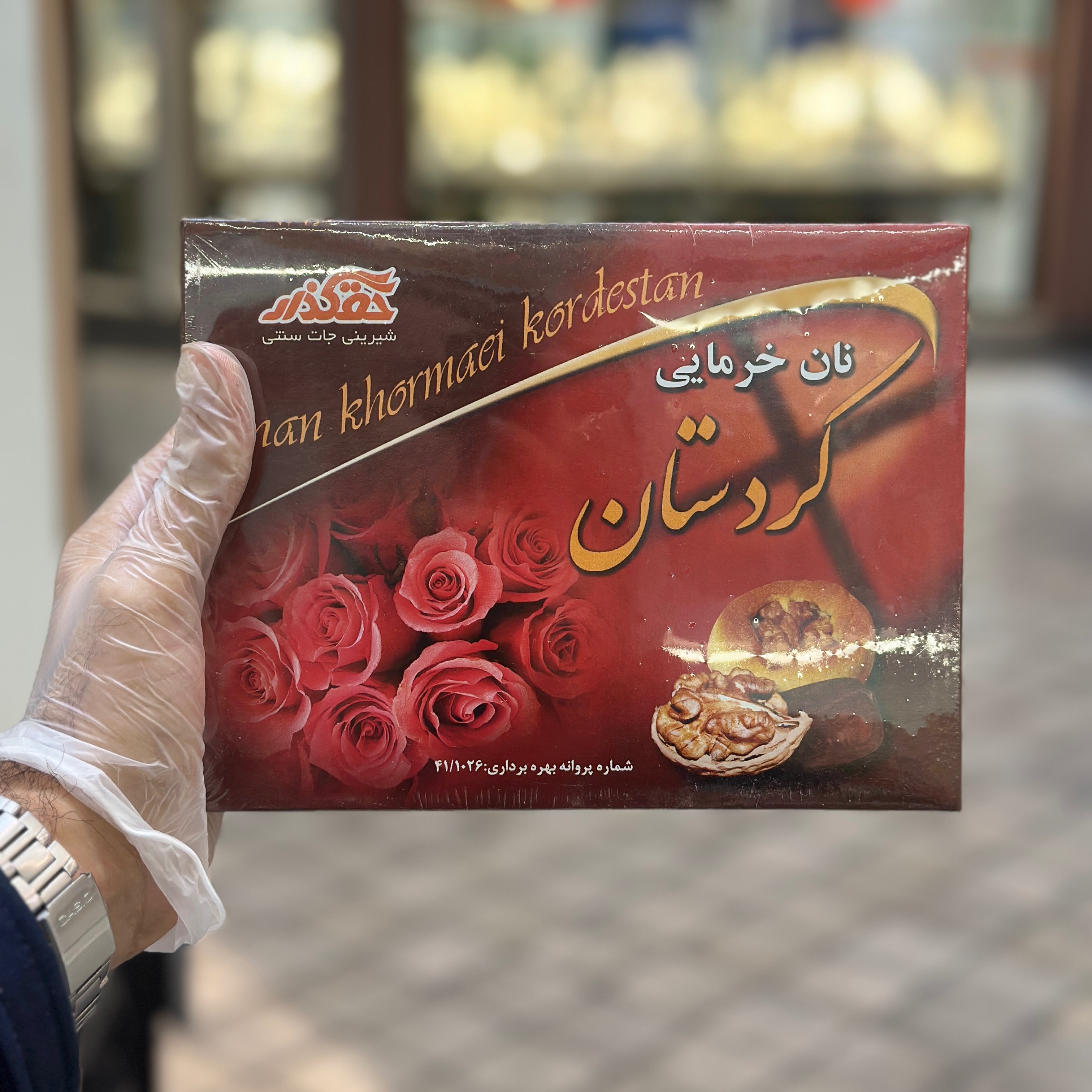 شیرینی خرمایی گردویی یکی از شیرینی های سنتی و خوشمزه ایرانی است که با خرما، گردو، آرد، شکر و تخم مرغ تهیه می شود. این شیرینی مقوی و مغذی است و معمولا با چای سرو می شود. برای تهیه این شیرینی، ابتدا خرما و گردو را با سفیده تخم مرغ مخلوط کرده و از چرخ گوشت رد می کنیم. سپس آرد، شکر، کره و پودر مخمر را با دست ورز داده و خمیر می کنیم. بعد از استراحت خمیر، آن را به قسمت های کوچک تقسیم کرده و گلوله ای از مواد خرمایی را داخل آن قرار می دهیم. سپس کلوچه ها را روی سینی فر چیده و با عسل و زعفران رومال می زنیم. در نهایت کلوچه ها را در فر گرم شده پخته و بعد از خنک شدن سرو می کنیم.